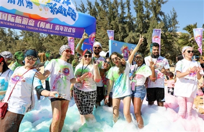 往届欢乐节活动中,外国游客尽情嬉戏。 武昊 摄