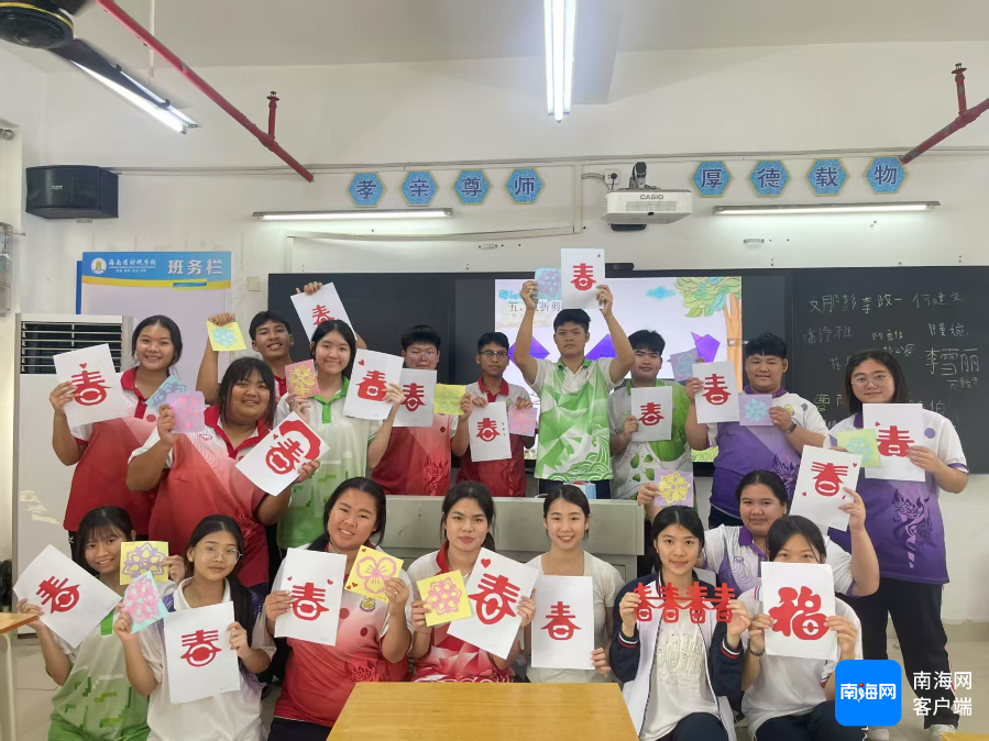 泰国龙成工商管理职业学院文化交流班的学生正在体验中国传统文化。海南省财税学校供图